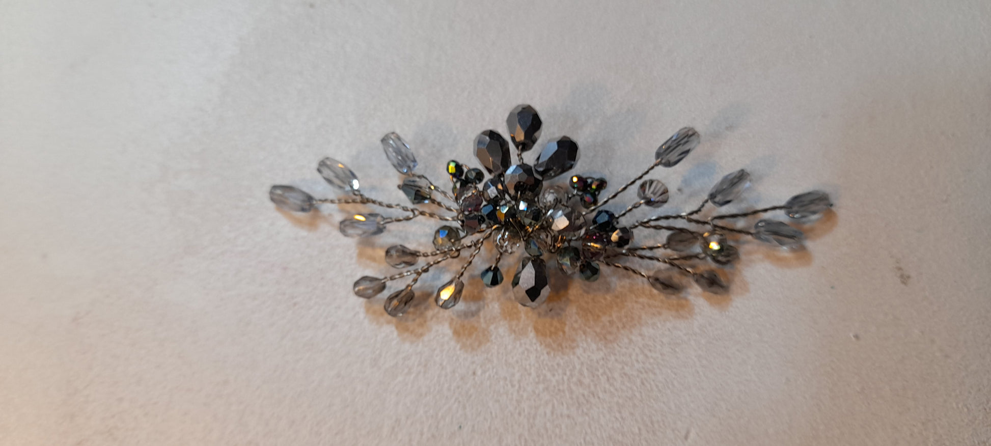 Mini Tocado de cristales en tono humo y gris. con pequeños detalles de strass.
